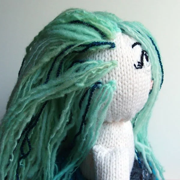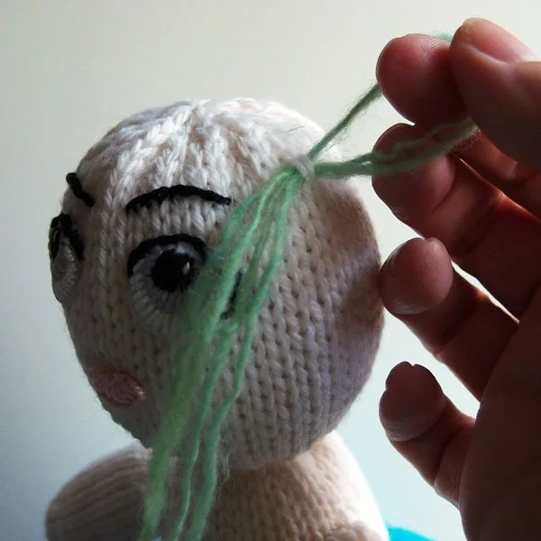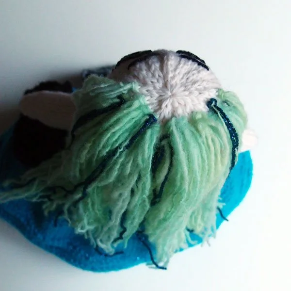 This tutorial will show you how to add yarn hair to a knitted doll, such as the Little Mermaid Topsy-Turvy Dolls.